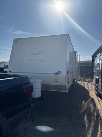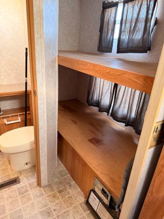 Good condition 2003 Trail Bay 32’ Bunkhouse with 1 pullout A/C and heat. All windows are good and stored dry tanks during the winter. Our family has grown smaller and no need for such a large travel trailer! 2 5/8” ball hitch and load leveler kit included. We have the mattresses for the bunks as well. Needs linoleum but that happens with summer heat! In storage now so we can work with you whenever you’d like to see it. Will trade for running 4wd 4 wheeler or 3000$ OBO.